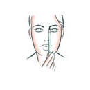 - La fin du sourcil se situe sur la ligne définie par le coin externe de la narine et le coin externe de l’œil.